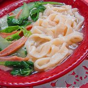 手擀面、青瓜、火腿、芹菜叶、油、盐、胡椒粉、鸡精。
