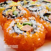 米饭、火腿、青瓜、鸡蛋、海苔、蟹籽、白醋、糖、盐。