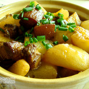 猪后腿肉、花椒、姜、香、八角、料酒、白糖、咖喱粉、生抽、盐、五香粉。