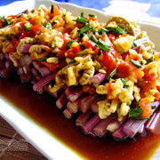 魔芋、梅菜肉酱、蒜、葱、剁椒、油、醋、酱油、白糖。