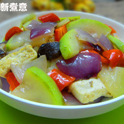 葫芦、洋葱、豆腐、香菇、红辣椒、油、盐、鸡精。