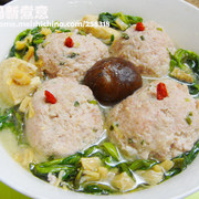 猪肉、鸡蛋、葱花、炸豆腐泡、香菇、空心菜、瑶柱、盐、胡椒粉、鸡精、麻油、姜。
