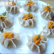 猪肉馅、香菇、饺子皮、马蹄、葱花、鸡蛋、胡萝卜丝、葱姜末、盐、胡椒粉、味精、麻油。