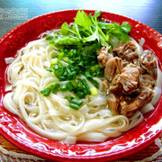 牛腩、面条、香叶、草果、桂皮、八角、红椒、姜、冰糖、盐、香菜、葱。