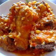 鸡腿、米饭、油、盐、酱油、胡椒粉、海鲜酱、黑芝麻、五香粉、蜂蜜。