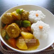 三七肥肉、洋葱、土豆、绿椒、胡萝卜、盐、胡椒粉、咖喱、麻油、油。