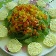 紫苏、鸡蛋、胡萝卜末、油、淀粉、盐。