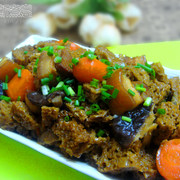 羽衣甘蓝、蘑菇、瘦肉、姜丝、麻油、盐、鸡精、料酒。
