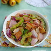 西兰花梗、腊肉、香菇、胡萝卜、油、鸡精、盐。