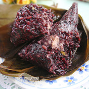 黑糯米、脱衣绿豆、咸蛋黄、五花肉、粽叶、棉线绳、油、盐、五香粉、料酒、酱油。