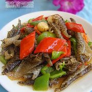 鱼皮、青椒、红椒、油、盐、生抽、蒜、料酒。