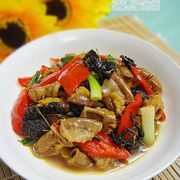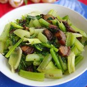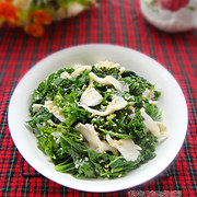 羽衣甘蓝、蘑菇、山胡椒油、芝麻、蒜瓣、麻油、醋、盐、鸡精。