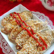 马友鱼、鸡蛋、面包糠、油、盐、料酒、姜、番茄酱。