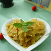 西瓜皮、盐、白糖、蒜蓉、芝麻油。