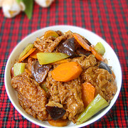 面筋、莴笋根、香菇、胡萝卜、盐、蚝油、鸡精、白糖、油、酱油。