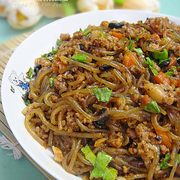 粉丝、肉馅、胡萝卜、芹菜叶、姜、蒜、油、甜面酱、豆豉。