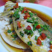 黄花鱼、油、盐、姜、葱、蒸鱼酱油、剁椒。
