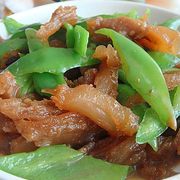 熟牛筋、青椒、油、盐、酱油、白糖。