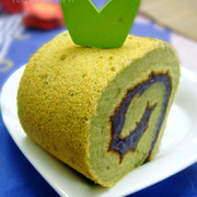 鸡蛋、低筋面粉、细砂糖、玉米油、水、泡打粉、绿茶粉、紫薯、炼乳、白糖。