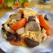番茄、鸡蛋、木耳、蘑菇、油、盐、胡椒粉。