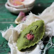 低筋面粉、无盐黄油、蛋白、细砂糖、杏仁粉、抹茶粉、盐渍樱花。