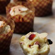 低粉、无油黄油、鸡蛋、无铅泡打粉、纯牛奶、砂糖、核桃仁、红枣碎、蔓越莓干、葡萄干、杏仁片、盐。