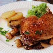 鸭腿、鸭油、生菜、柠檬汁、土豆、白蘑菇。