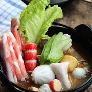 猪骨、鸡爪、干贝、牛油、花生沙嗲酱、芝麻酱、椰浆、洋葱、西芹、葱、料酒、姜、盐、肥牛、鱼丸、鱼豆腐、鱼板、甜玉米、虾丸、手打牛肉丸。