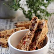 即食燕麦片、混合果干、全麦粉、红糖、麦芽糖、无盐黄油、香草香精、蜂蜜、水。