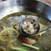 三黄鸡、柠檬、泡酸菜、泡野山椒、葱、姜、史云生上汤、白醋、盐、白糖。
