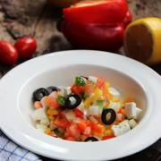 番茄、彩椒、乳瓜、菲达奶酪、洋葱、黑橄榄、盐、橄榄油、黑胡椒。