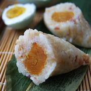 原粒糯米、燕麦片、咸蛋黄、培根碎、盐、粽叶、马莲草。