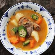 牛腩、牛骨髓、小番茄、胡萝卜、马铃薯、洋葱、秋葵、百里香、盐、黑胡椒。