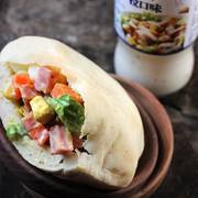 秋葵、培根、丘比沙拉汁焙煎芝麻口味。