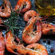 活虾、迷迭香、橄榄油、海盐、胡椒颗粒、柠檬汁。