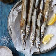 针鱼、柠檬汁、橄榄油、海盐、胡椒。