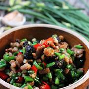 韭苔、猪里脊肉、干豆豉、小米椒、杭椒、姜、蒜、干淀粉、生抽、黄酒、白糖、盐。
