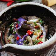 长茄子、小米椒、青辣椒、蒜、香菜、花椒、蚝油、蒸鱼豉油、白糖、盐。