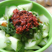 水腌菜、粉丝、里脊肉、香菜、青笋、芝麻、鲜姜、小米辣、盐、酱油、油辣椒、花椒粉。