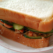 吐司、黄瓜、火腿肠、核桃仁、黄豆酱。
