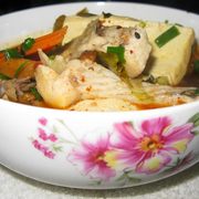 草鱼、香菜、香葱、豆腐、蕃茄、土豆、胡萝卜、盐、火烧辣椒、蘸水辣、芝麻、花椒。