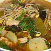 鱿鱼、腌菜、姜、香菜、小米辣、蕃茄、土豆、土芽、糊辣椒、花椒、盐。