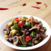 鸡胗、酸豆角、细青椒、细红椒、生姜、蒜头、油、盐、白酒、生抽、蚝油。
