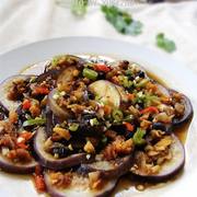 紫长茄、老干妈、蒜头、生姜、细青椒、细红椒、葱、油、生抽。