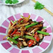 五花肉、干鱿鱼、香干、水芹菜、红椒、蒜头、生姜、葱白、油、盐、生抽、蚝油、米酒、白糖、黑胡椒粉。