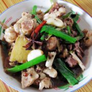 猪脚、红辣椒、小黄椒、老姜、八角、大青葱、酱油、陈醋、淀粉、盐、味精。