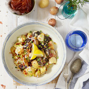 各色小土豆、Parma ham、小洋葱、蛋黄酱、黄芥酱、柠檬、鸡蛋、小葱、盐、研磨黑胡椒、橄榄油。
