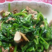猪肉、豌豆尖、泡姜、泡野山椒、油、蒜、盐、鸡精、生抽、葱。