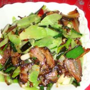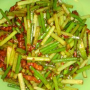 蒜薹、猪里脊、辣椒酱、油、盐。