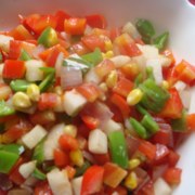 青辣椒、红辣椒、山药、胡萝卜、玉米、洋葱、盐、油。